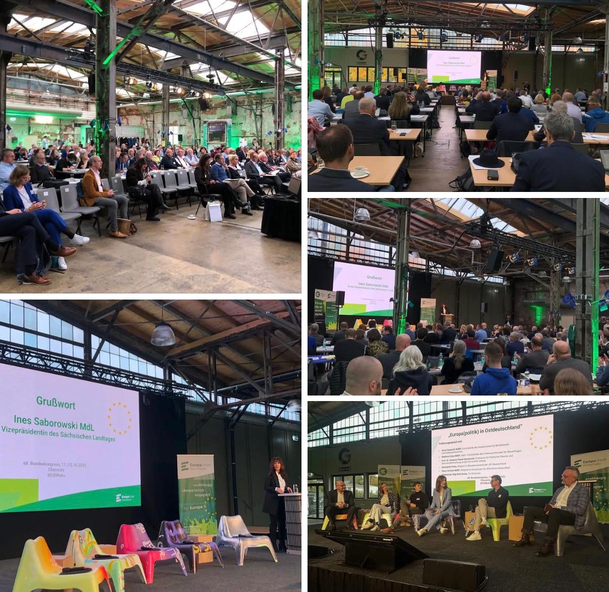Am 11. Oktober 2025 fand der 68. Bundeskongress der Europa-Union Deutschland im Garagen-Campus in Chemnitz statt. Wir haben uns gefreut, die Delegierten der Europa-Union in Chemnitz willkommen zu heißen und gratulieren herzlich zum 10-jährigen Bestehen des sächsischen Landesverbandes. Europa schaut 2025 neugierig, positiv und erwartungsvoll auf Chemnitz – auf dieses neue Zentrum der europäischen Kultur.